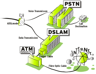 C. Internet Requests: Data coming from your PC passes from the ADSL modem to the digital subscriber line access multiplexer (DSLAM). The DSLAM links many ADSL lines to a single high-speed asynchronous transfer mode (ATM) line, which in turn connects to the Internet at speeds up to 1Gbps.
