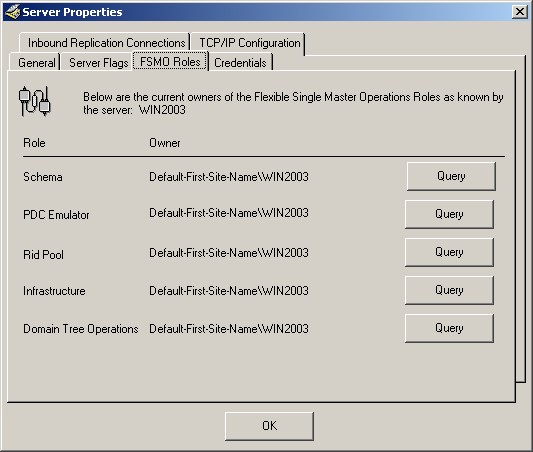 Use REPLMON to query and control replication and to view the location of the FSMO roles as shown in the following dialogs.